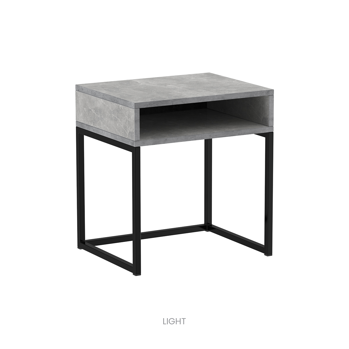 Der Tisch VITO verbindet klare Linien mit der Funktionalität eines offenen Ablagebereichs. Die Metallkonstruktion in Schwarz in Kombination mit der Tischplatte im Betondekor (Dark / Light) verleiht dem Interieur einen modernen industriellen Charakter.
